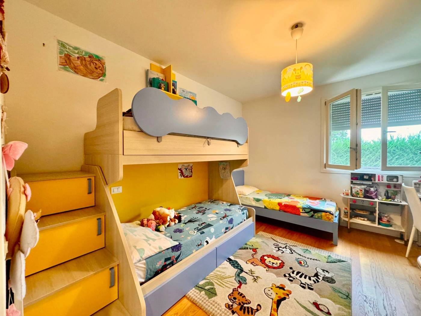 Il disimpegno ci conduce alla zona notte dove troviamo i doppi servizi finestrati, e le due camere da letto, di cui una doppia e una matrimoniale. completano la soluzione il garage al piano interrato e il locale tecnico al piano. Rif. 23DV