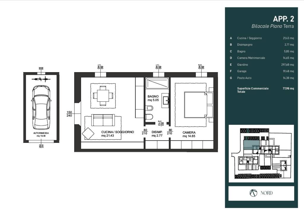 Garage e posto auto completano la soluzione.