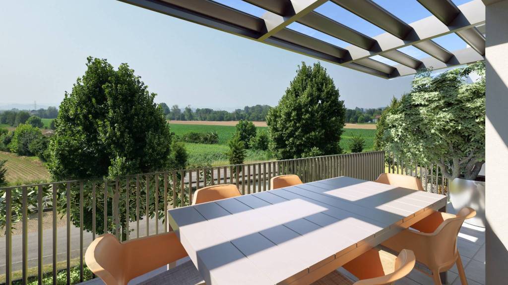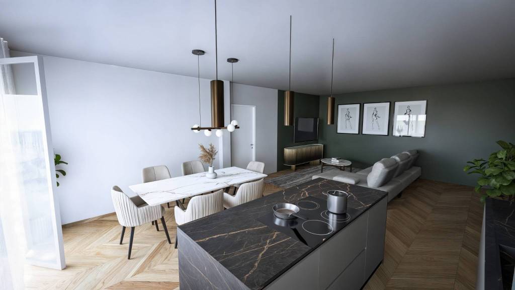 I garage fuori terra assicurano comodità e sicurezza, mentre ampi terrazzi abitabili e giardini privati regalano spazi preziosi dove rilassarsi, coltivare le proprie passioni o semplicemente godersi un raggio di sole in totale tranquillità. Rif CAR/3:Appartamento tricamere al piano primo.Cucina e soggiorno open space con accesso a terrazzo esterno. 3 camere e doppio servizio.Completa la soluzione un garage doppio in lunghezza.