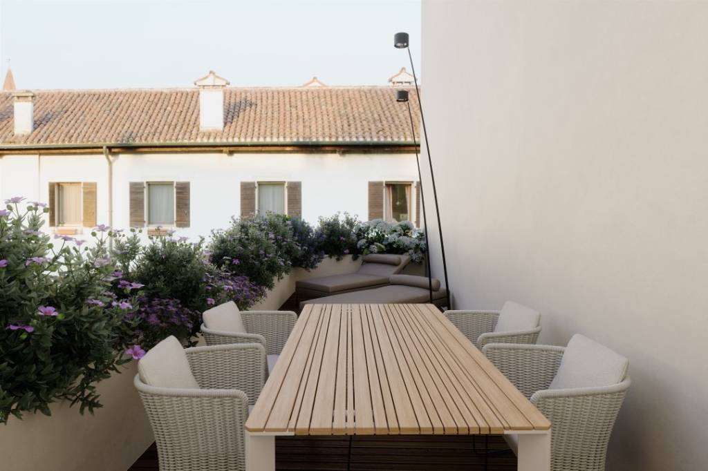 L’edificio si sviluppa su quattro livelli, ognuno dei quali ospita spazi abitativi di lusso che coniugano l’autenticità storica con il comfort contemporaneo. Un elemento distintivo sono le terrazze private che offrono viste panoramiche mozzafiato sulla città, creando un connubio perfetto tra vita urbana e tranquillità privata.