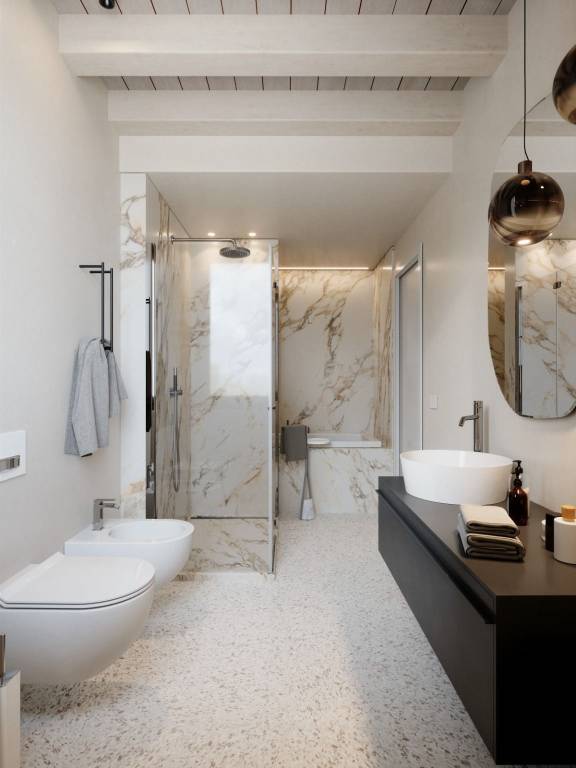 Oltre 80 mq di zona living .Terrazza da 26 mq con affaccio. 4 ampi servizi di cu 3 padronali . Zona notte distribuita da 3 camere matrimoniali, di cui una fornita di cabina armadio .