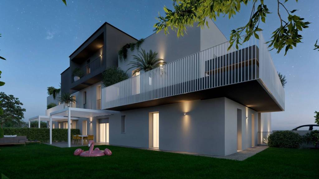 Linee pulite, volumi equilibrati e materiali di pregio disegnano un insieme residenziale moderno e raffinato, dove ogni dettaglio è pensato per offrire comfort, riservatezza e risparmio energetico. PIR/2: Appartamento tricamere al terra composto da cucina soggiorno dalle generose metrature accesso al giardino di 200mq. zona notte composta da tre camere di cui la padronale con bagno suite, bagno di servizio e lavanderia. completa la soluzione un garage doppio in lunghezza