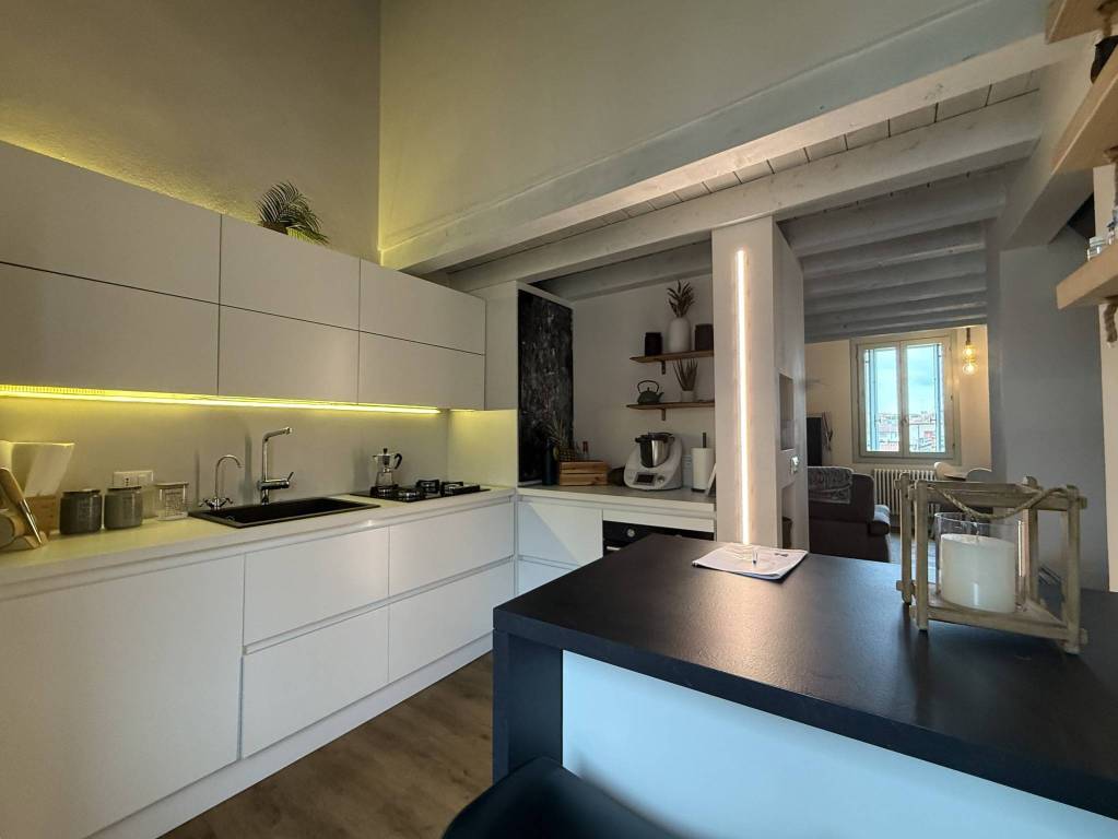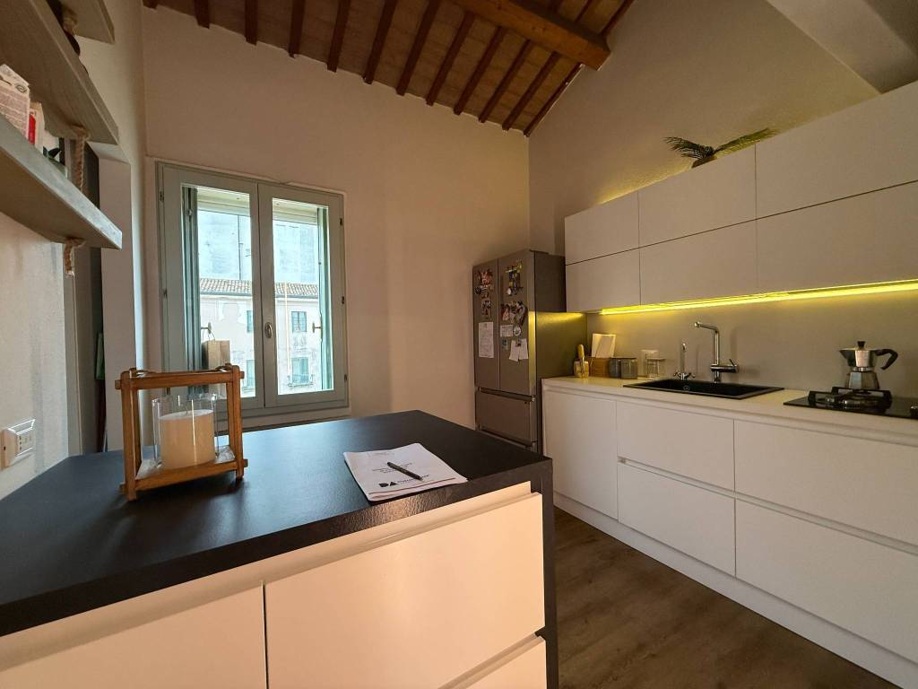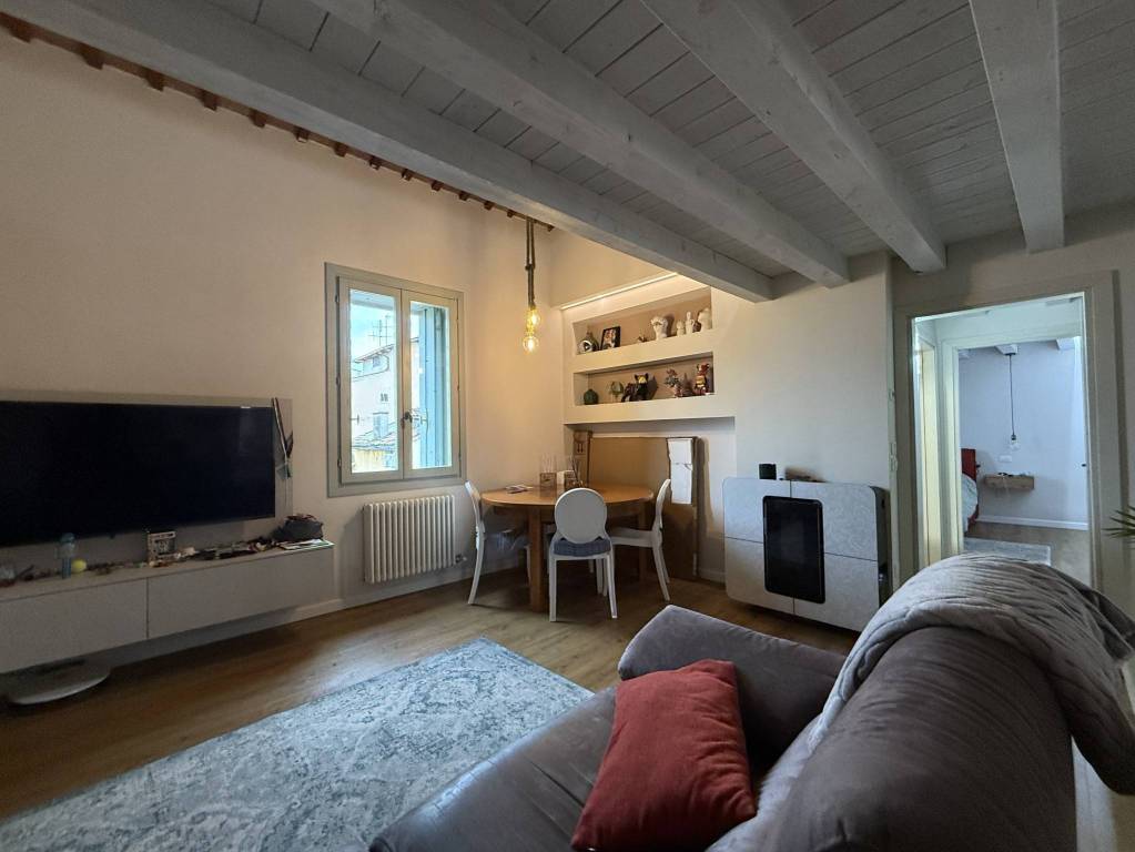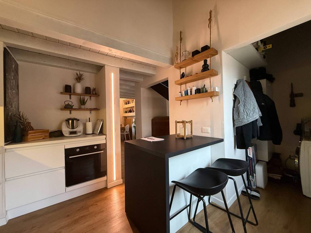 In contesto residenziale alle porte del centro storico appartamento duplex elegantemente rifinito. Cucina e soggiorno separati con comodo ripostiglio lavanderia sul piano principale .Attiguo troviamo un bagno e la camera matrimoniale.Tramite scala interna si accede al piano soppalcato gestito con ambiente pluriuso una seconda camera e secondo bagno. Ristrutturato nel 2019.Completa la soluzione un posto auto privato interno alla corte condominiale.Rif 33 CM