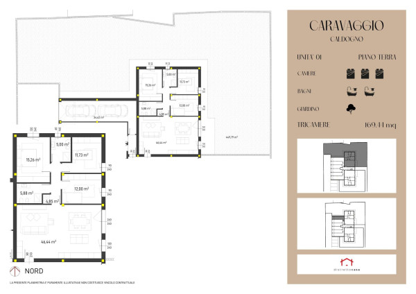 In un contesto residenziale riservato e immerso nel verde della tranquilla Caldogno, nasce un nuovo ed esclusivo residence pensato per chi desidera vivere ogni giorno all’insegna del benessere e della qualità. Due eleganti palazzine, dal design moderno e lineare, ospitano rispettivamente 5 e 6 unità abitative, offrendo privacy e comfort in un ambiente armonioso e familiare. Le abitazioni, disposte su due livelli garantiscono altissime prestazioni energetiche, isolamento acustico e sostenibilità. Ogni dettaglio è stato studiato per un’abitazione efficiente e al passo coi tempi, capace di coniugare tecnologia, estetica e funzionalità. I garage fuori terra assicurano comodità e sicurezza, mentre ampi terrazzi abitabili e giardini privati regalano spazi preziosi dove rilassarsi, coltivare le proprie passioni o semplicemente godersi un raggio di sole in totale tranquillità. CAR/1: Appartamento tre camere con giardino privato da 450 mq, ingresso su zona giorno da 43 mq disimpegno che ci conduce alla zona notte dove troviamo le tre camere, i doppi servizi e la lavanderia, completa la soluzione il garage doppio. Distretto Casa presenta un nuovo modo di acquistare la tua nuova casa con uno sconto per i primi 5 clienti che decideranno di opzionare la propria nuova abitazione, tramite la partnership distretto casa e distretto casa agenzie, nasce la nuova opportunità superpromo. Cos’è superpromo? E un opportunita’ che nasce per tutte le famiglie che decidono di affidare l’acquisto piu importante della loro vita al gruppo distretto casa. Come funziona superpromo? Ai primi 5 clienti che sceglieranno di opzionare un abitazione nel residence Caravaggio sarà riservato uno sconto pari al 5%. Classe Energetica: A4