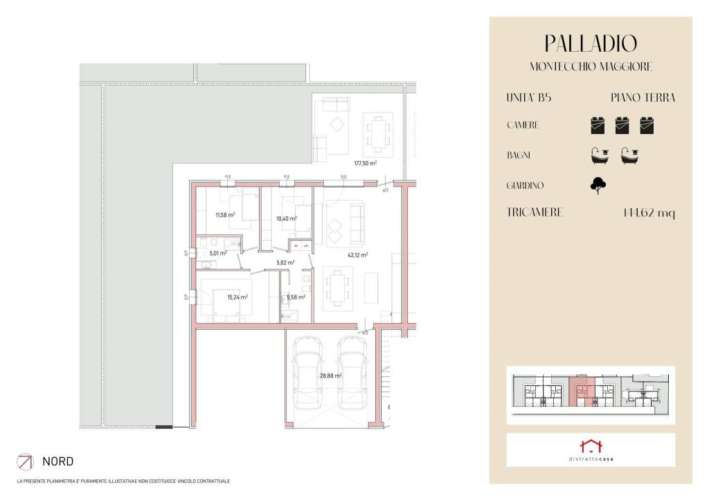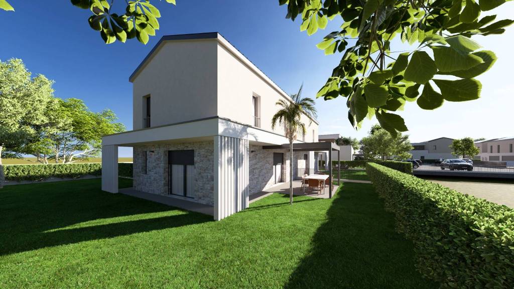 In via Martiri di Cefalonia, a Montecchio Maggiore, nasce un luogo pensato per chi sogna una casa capace di accogliere, proteggere e ispirare ogni giorno. Un nuovo progetto residenziale prende forma in un contesto di quiete e verde, dove il tempo sembra rallentare e la vita ritrova il suo ritmo naturale. Il complesso, moderno ed elegante, ospita 20 abitazioni tra ville affiancate e unità inserite in piccoli edifici da sole 4 unità ciascuno, tutte sviluppate su due livelli. Ambienti luminosi si aprono su giardini privati e terrazze intime, spazi da vivere in ogni stagione, tra momenti di condivisione e attimi di silenzio. Qui il comfort incontra la bellezza delle cose semplici, la privacy diventa valore e la casa torna ad essere rifugio. Un’idea di abitare che mette al centro il benessere, la qualità della vita e il piacere autentico di sentirsi davvero a casa. Rif PAL/B5: Tricamere con ingresso indipendente e giardino di 180 mq. Zona giorno di oltre 40 mq.3 camere una matrimoniale ,una doppia una singola.Doppio bagno.Garage Doppio.
