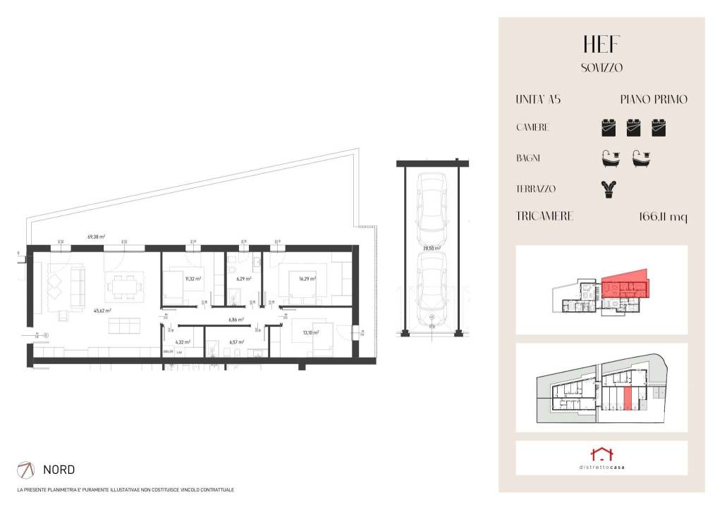 RESIDENCE HEF Nel cuore di Sovizzo, nell’elegante e tranquilla zona di San Daniele, prende vita un nuovo complesso immobiliare pensato per chi desidera qualcosa di più di una semplice casa: un luogo in cui sentirsi davvero al sicuro. Un progetto intimo e riservato, composto da sole 6 unità abitative disposte su due livelli, dove ogni spazio è stato immaginato per offrire armonia, luce e benessere quotidiano. Linee moderne, ambienti accoglienti e dettagli curati creano un’atmosfera raffinata, capace di unire comfort e bellezza in modo naturale. HEF/5 : Tricamere piano primo e ultimo con terrazza da 70 Mq. Ingresso su zona giorno in open-space da 46 Mq con accesso diretto al terrazzo tramite porta-finestra. In zona notte troviamo camera matrimoniale ,camera doppia e camera singola, doppio servizio con lavanderia. Completa la soluzione garage doppio. Distretto Casa presenta un nuovo modo di acquistare la tua nuova casa con uno sconto per i clienti che decideranno di opzionare la propria nuova abitazione prima dell’inizio lavori,tramite la partnership distretto casa e distretto casa agenzie, nasce la nuova opportunità superpromo. Cos’è superpromo? E un opportunita’ che nasce per tutte le famiglie che decidono di affidare l’acquisto piu importante della loro vita al gruppo distretto casa. Come funziona superpromo? Ai clienti che sceglieranno di opzionare un abitazione nel residence HEF prima dell’inizio lavori sarà riservato uno sconto pari al 5%.