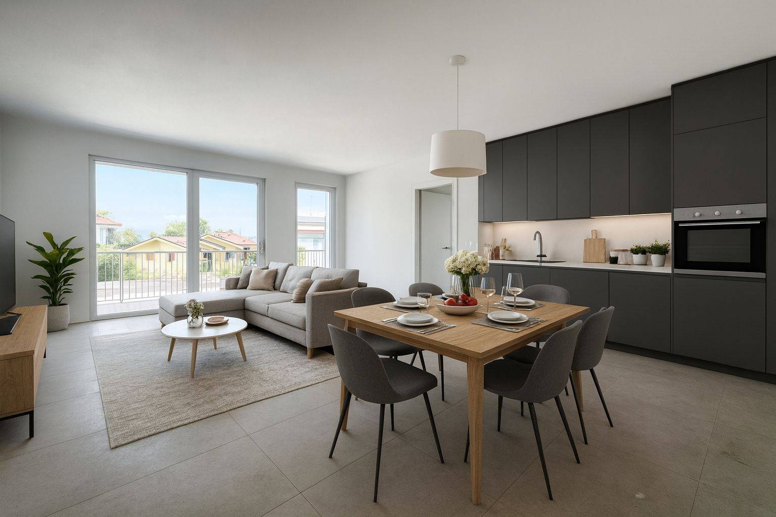 OME/3 Appartamento bicamere in classe A4. Ingresso su zona giorno di 35 mq con ampia porta finestra che porta su terrazza esterna.