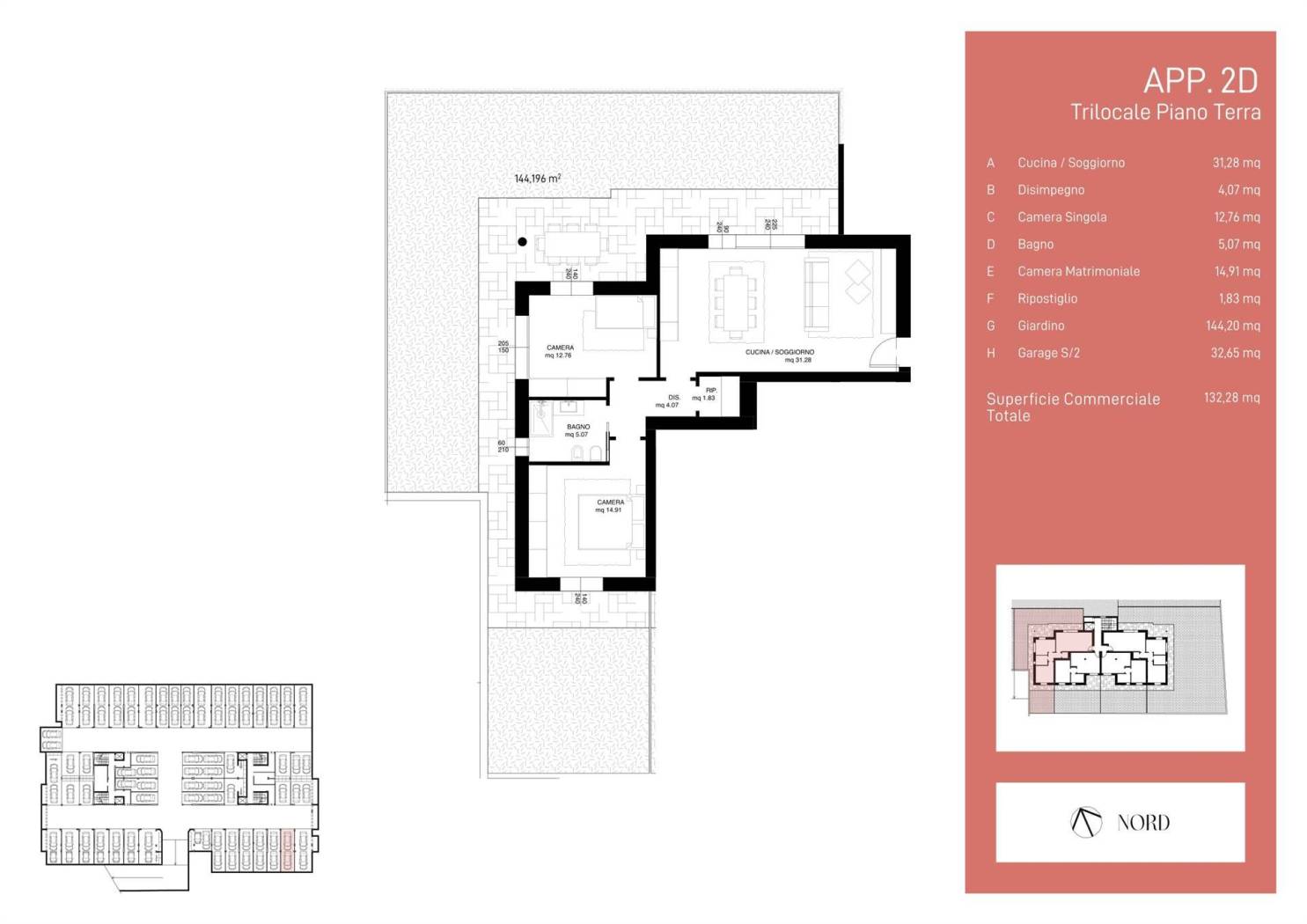 Le Residenze Virgilio non sono semplicemente nuove abitazioni, ma una promessa: quella di un vivere più autentico, dove comfort, bellezza e natura si fondono in un’armonia rara, tutta da abitare. Rif VIR/2D; Trilocale al piano terra con giardino privato di 145 mq.