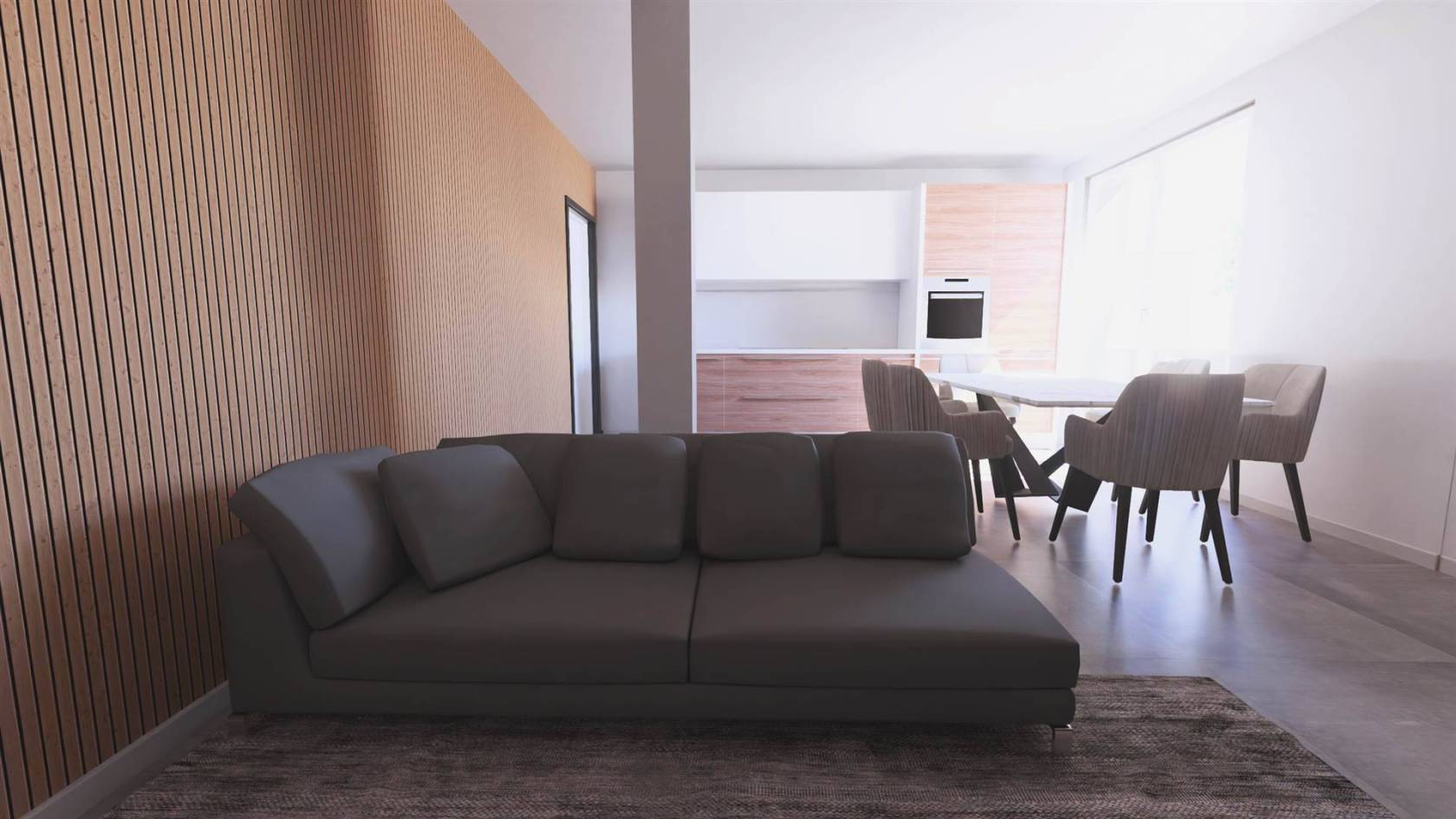 Cucina e soggiorno da 25 mq. Bagno finestrato e camere da letto.