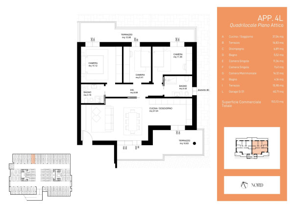 Le Residenze Virgilio non sono semplicemente nuove abitazioni, ma una promessa: quella di un vivere più autentico, dove comfort, bellezza e natura si fondono in un’armonia rara, tutta da abitare. Rif VIR/4L; Quadrilocale attico all’ultimo piano con ascensore.