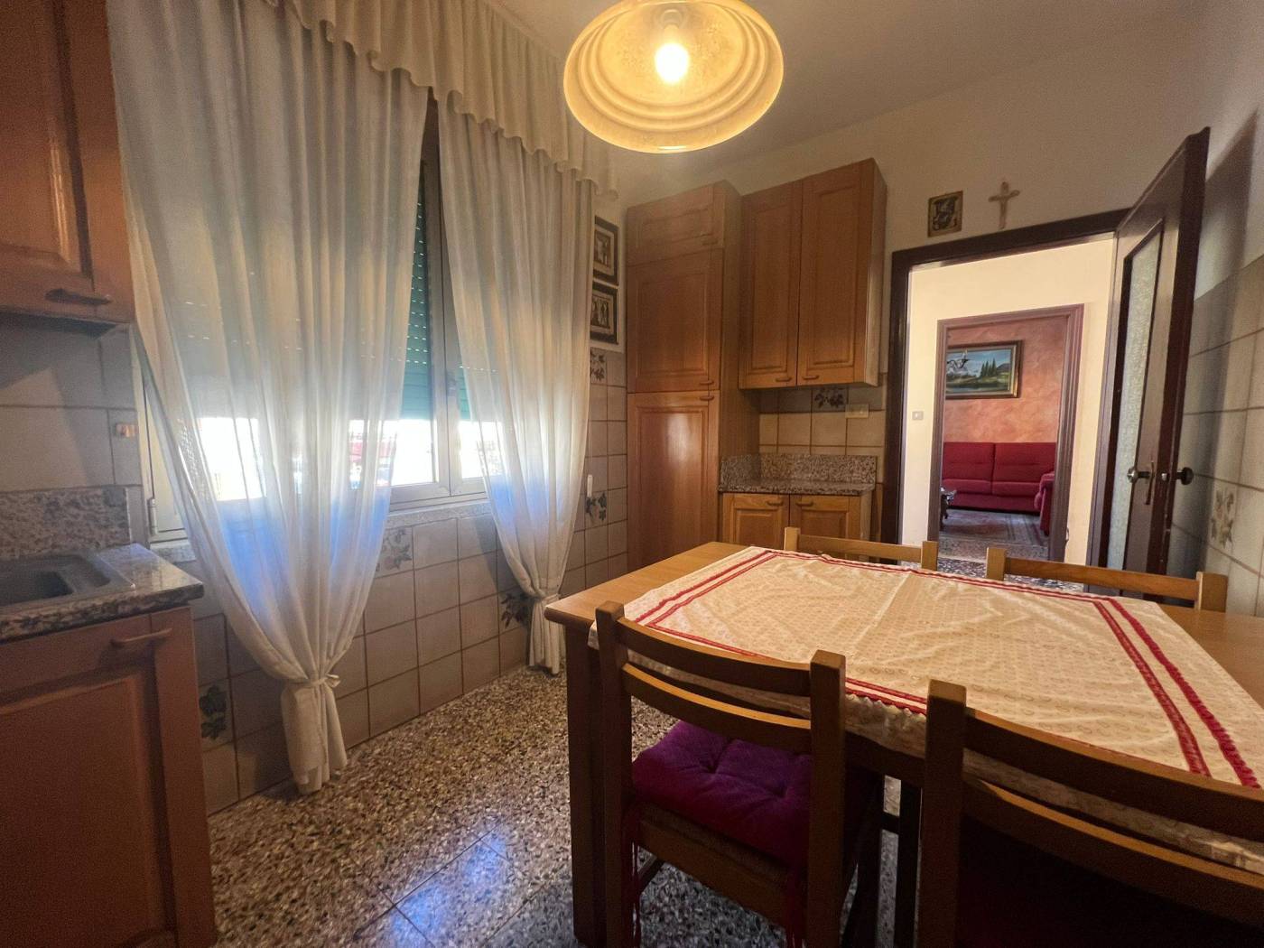 L’appartamento è composto da un soggiorno doppio luminoso, tre camere da letto e un bagno. La cucina è abitabile, perfetta per chi ama cucinare e trascorrere momenti conviviali.