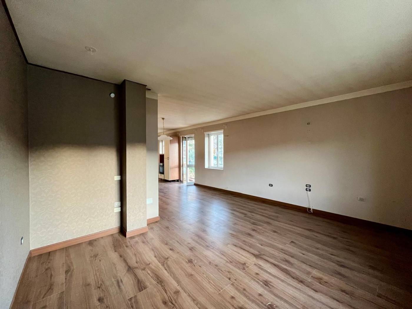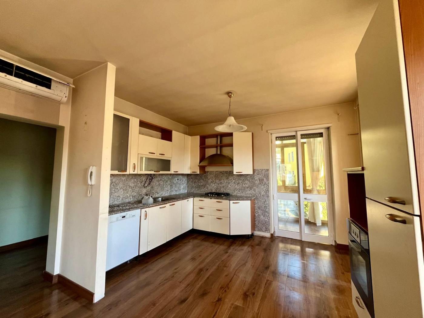 Cucina e soggiorno open space con ampio terrazzo. Zona notte gestita con due camere di cui una matrimoniale, una singola e due servizi.