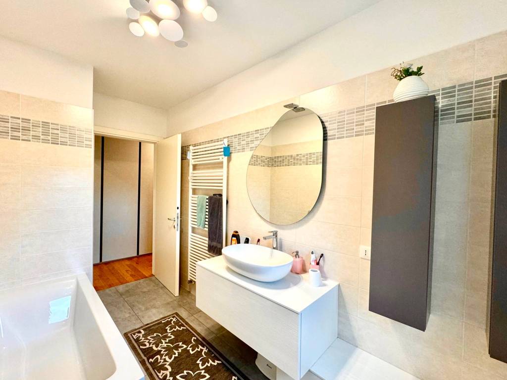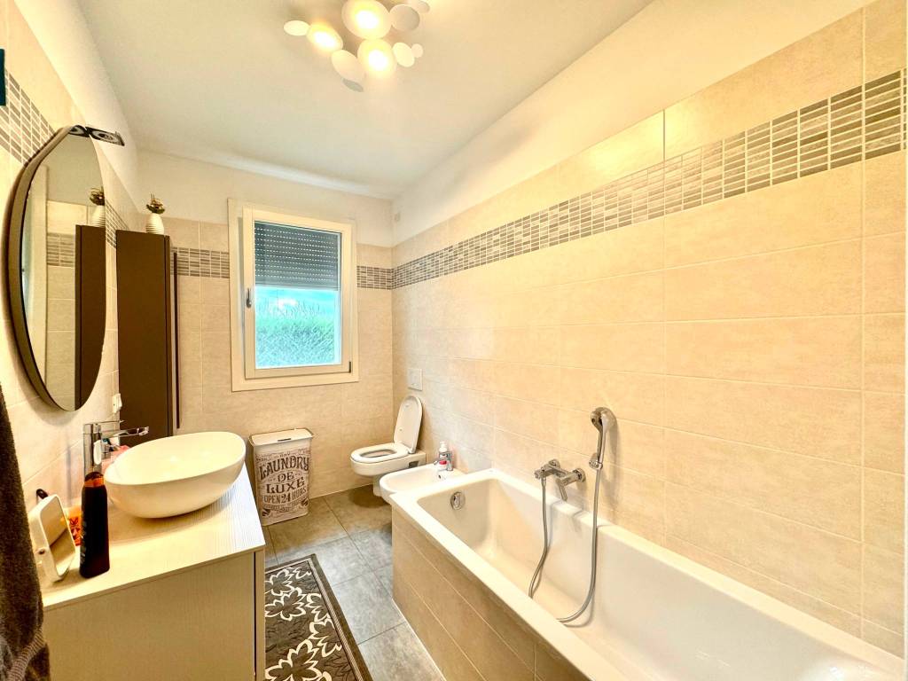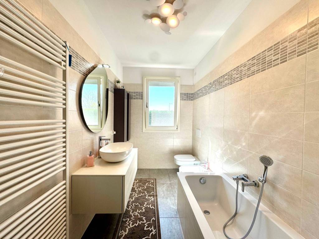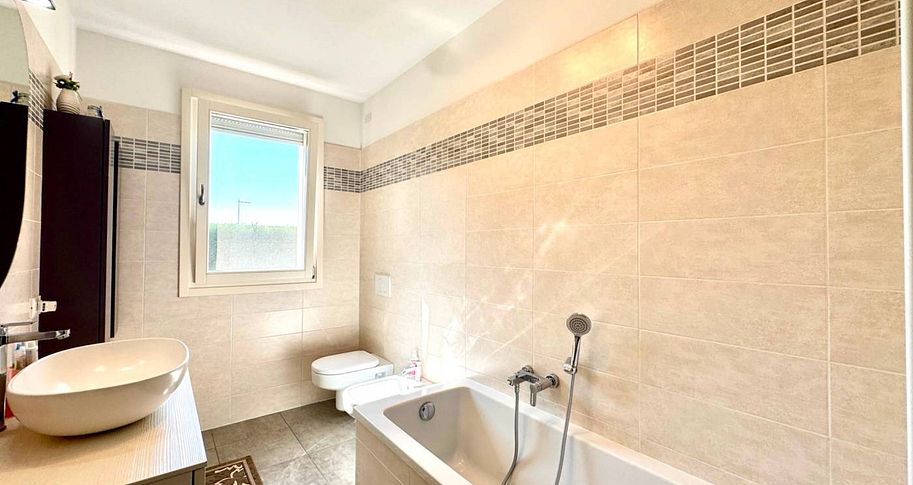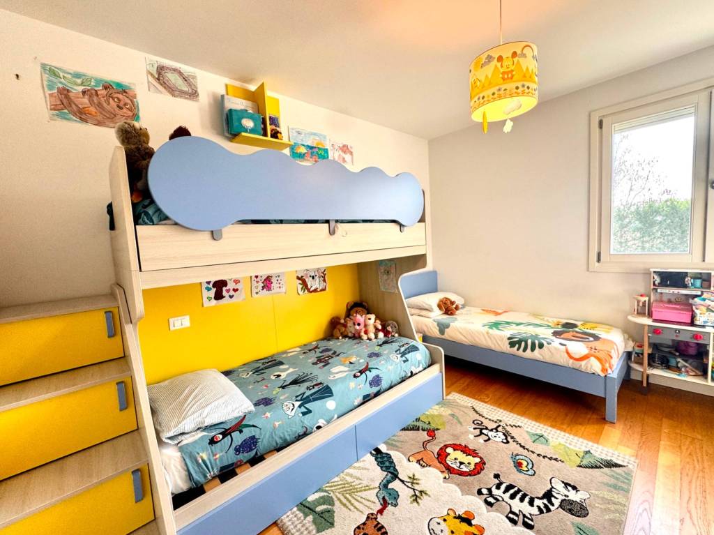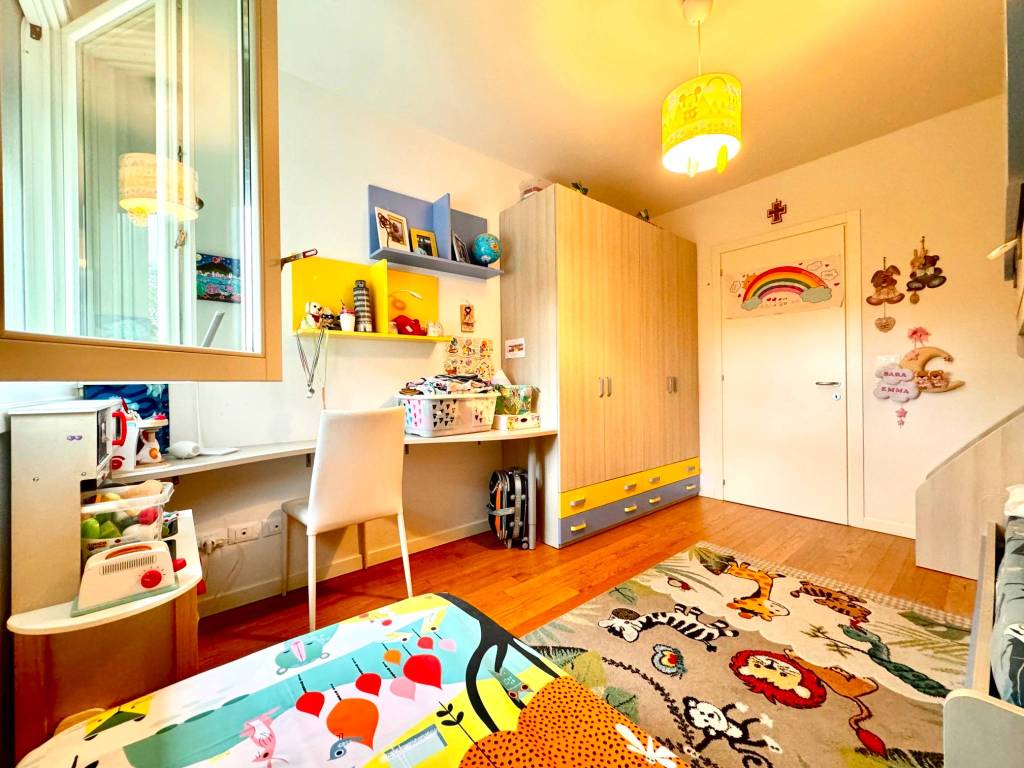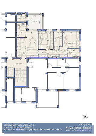Il disimpegno ci conduce alla zona notte dove troviamo i doppi servizi finestrati, e le due camere da letto, di cui una doppia e una matrimoniale. completano la soluzione il garage al piano interrato e il locale tecnico al piano. Rif. 23DV