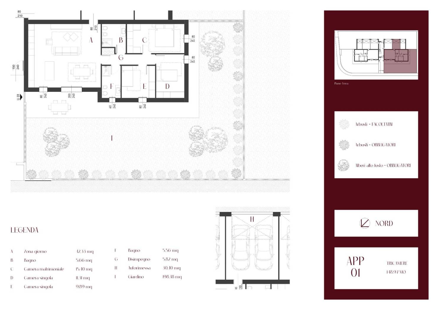GAR/1 :Appartamento quadrilocale al piano terra con giardino di 200 Mq. Zona giorno in open space dalle generose metrature.Zona notte gestita con tre camere e doppio servizio.