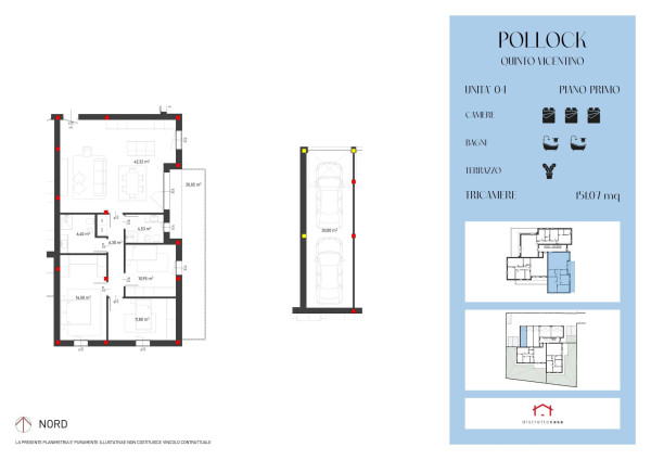 Immerso nella quiete di Quinto Vicentino, alla fine di una piccola via chiusa, dove il rumore del traffico sembra un ricordo lontano e il paese si mostra nella sua dimensione più autentica, sorge un Residence Pollock. Composto da solo 5 unità, questo piccolo complesso residenziale appare come un rifugio moderno e armonioso, dove le linee architettoniche pulite dialogano con la tranquillità del quartiere. Le abitazioni, distribuite tra il piano terra e il primo piano, sono state pensate per chi desidera una vita quotidiana fatta di luce, comfort e spazi da vivere con calma. POL/4: Appartamento sito al piano primo con ampio terrazzo da circa 24 mq. ingresso su zona giorno da oltre 44 mq il tutto in open-space. Il disimpegno ci conduce al reparto notte dove ci accolgono un bagno, lavanderia e le tre camere di cui una padronale dalle ampie metrature con aggiunta di bagno suite e cabina armadio. Completa la soluzione un garage doppio in larghezza da oltre 30 mq.Distretto Casa presenta un nuovo modo di acquistare la tua nuova casa con uno sconto per i primi 3 clienti che decideranno di opzionare la propria nuova abitazione, tramite la partnership distretto casa e distretto casa agenzie, nasce la nuova opportunità superpromo. Cos’è superpromo? E un opportunita’ che nasce per tutte le famiglie che decidono di affidare l’acquisto piu importante della loro vita al gruppo distretto casa. Come funziona superpromo? Ai primi 3 clienti che sceglieranno di opzionare un abitazione nel residence Pollock sarà riservato uno sconto pari al 5%. Classe Energetica: A4
