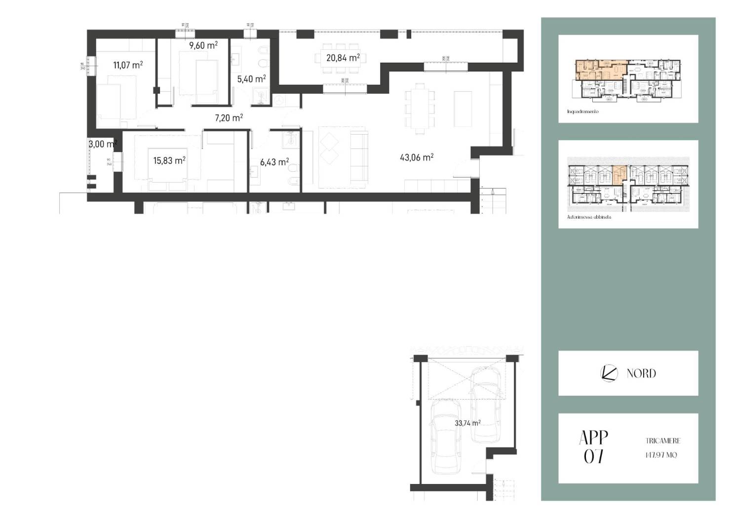 CAS/07: In contesto di nuova costruzione, appartamento tricamere al piano secondo in classe A4. Ingresso su ampia zona giorno di oltre 40 mq in open space con uscita diretta su ampia terrazza abitabile di oltre 20 mq.