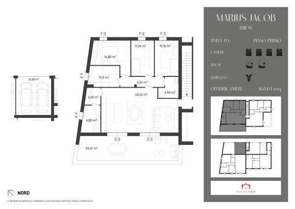 In una delle zone più tranquille e riservate di Thiene, alla fine di una via chiusa, prende vita un nuovo ed elegante intervento. Residence Jacob con le sue 4 unità sviluppate interamente su due piani fuori terra, è pensato per offrire il massimo della privacy e del comfort, rendendo cosi questo nuovo progetto praticamente unico nel panorama immobiliare della città di Thiene.