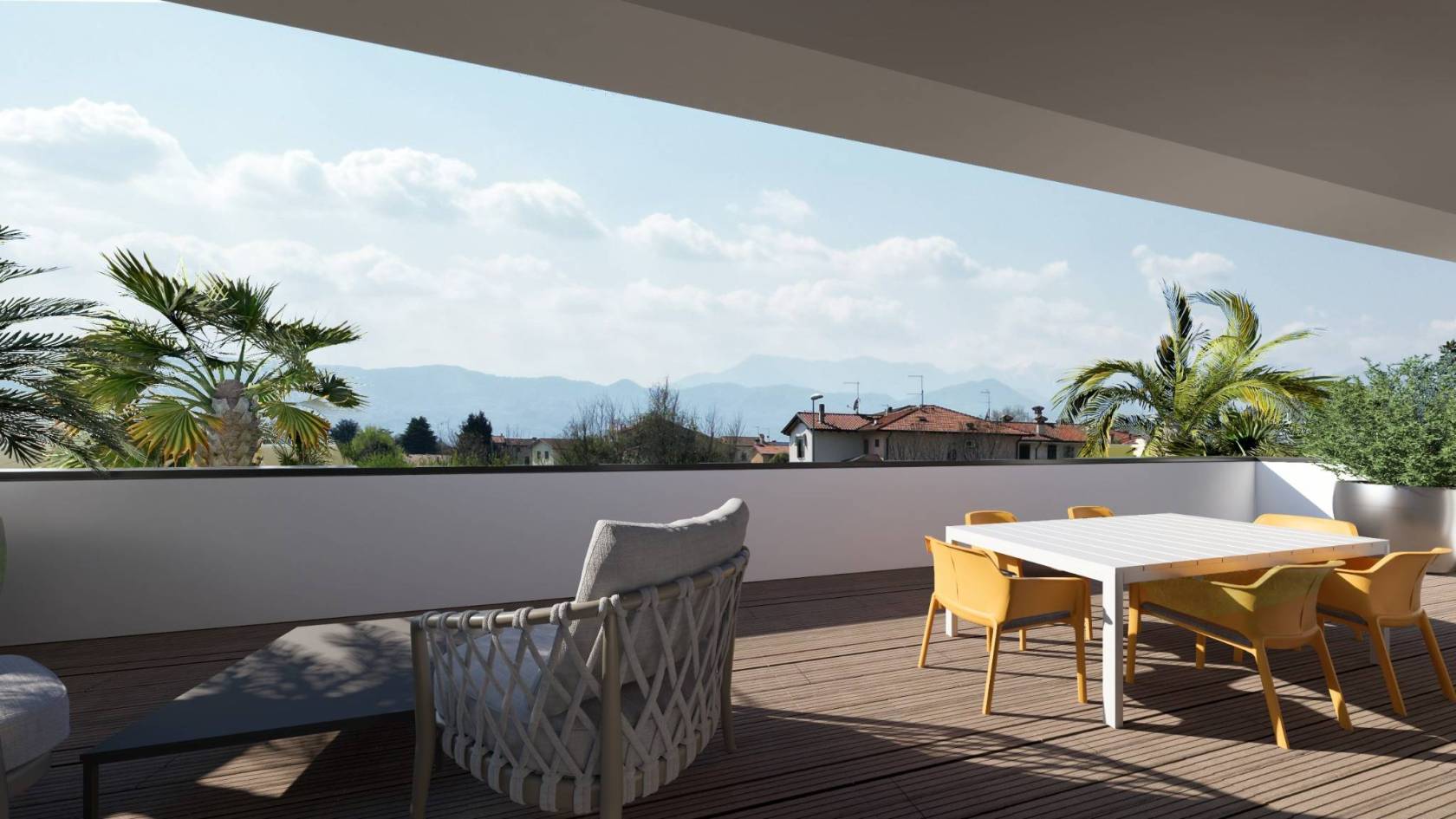 JAC/03: Appartamento tricamere di oltre 160 mq. Ingresso su zona giorno di 45 mq gestita in open space con accesso diretto ad ampia terrazza abitabile di oltre 40 mq.