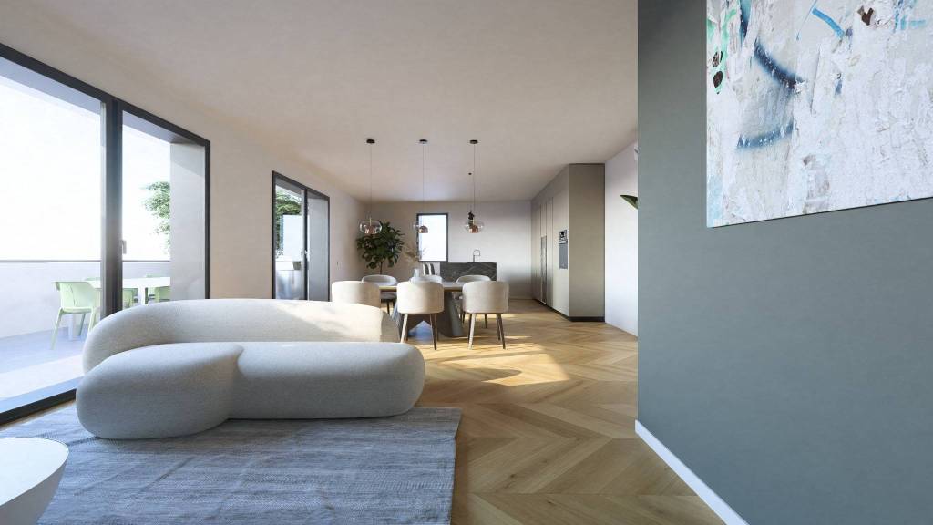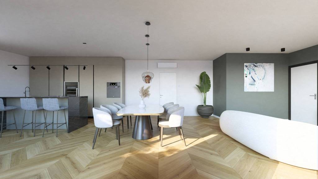 JAC/03: Appartamento tricamere di oltre 160 mq. Ingresso su zona giorno di 45 mq gestita in open space con accesso diretto ad ampia terrazza abitabile di oltre 40 mq.