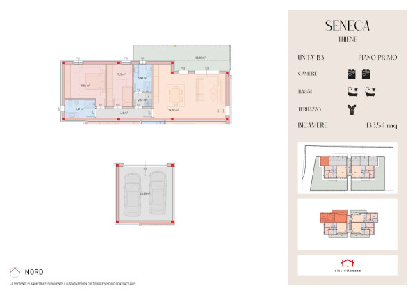 RIF SEN/B3: Appartamento bicamere al piano primo con terrazza abitabile. Zona giorno di 35 mq con uscita su terrazza di 20 mq, Zona notte composta da due camere di cui una matrimoniale ed una doppia, il tutto accompagnato da due bagni, entrambi finestrati Completa la soluzione il garage doppio.