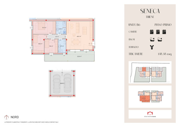 La zona notte è composta da una camera padronale dalle generose metrature, una camera doppia, una camera singola e doppi servizi. Completa la soluzione un comodo garage doppio in larghezza Distretto Casa presenta un nuovo modo di acquistare la tua nuova casa con uno sconto per i primi 5 clienti che decideranno di opzionare la propria nuova abitazione, tramite la partnership distretto casa e distretto casa agenzie, nasce la nuova opportunità superpromo.