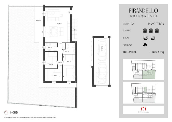 Linee pulite, volumi equilibrati e materiali di pregio disegnano un insieme residenziale moderno e raffinato, dove ogni dettaglio è pensato per offrire comfort, riservatezza e risparmio energetico. PIR/2: Appartamento tricamere al terra composto da cucina soggiorno dalle generose metrature accesso al giardino di 200mq. zona notte composta da tre camere di cui la padronale con bagno suite, bagno di servizio e lavanderia. completa la soluzione un garage doppio in lunghezza Distretto Casa presenta un nuovo modo di acquistare la tua nuova casa con uno sconto per i primi 5 clienti che decideranno di opzionare la propria nuova abitazione, tramite la partnership distretto casa e distretto casa agenzie, nasce la nuova opportunità superpromo.