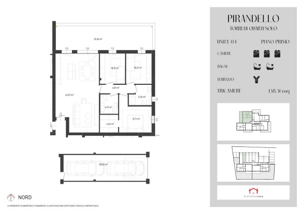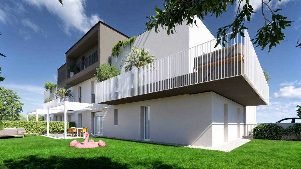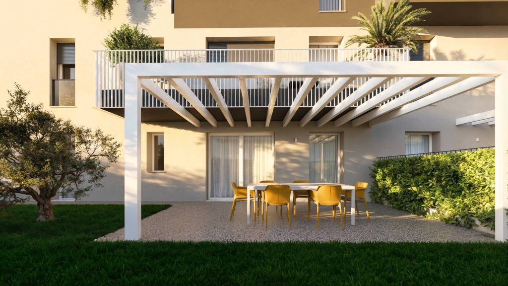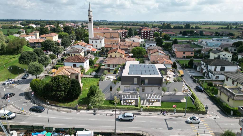Nel cuore della tranquilla e accogliente frazione di Marola nel comune di Torri di Quartesolo, sorge un nuovo intervento residenziale che unisce architettura contemporanea, efficienza energetica e qualità dell’abitare. Il progetto prevede la realizzazione di otto unità immobiliari indipendenti in classe A4. Linee pulite, volumi equilibrati e materiali di pregio disegnano un insieme residenziale moderno e raffinato, dove ogni dettaglio è pensato per offrire comfort, riservatezza e risparmio energetico. PIR/4: Appartamento tricamere al piano primo composto da cucina soggiorno dalle generose metrature, bagno finestrato con aggiunta di lavanderia e accesso alla terrazza di 33 mq. zona notte composta da tre camere di cui la padronale con bagno suite. completa la soluzione un garage doppio in lunghezza
