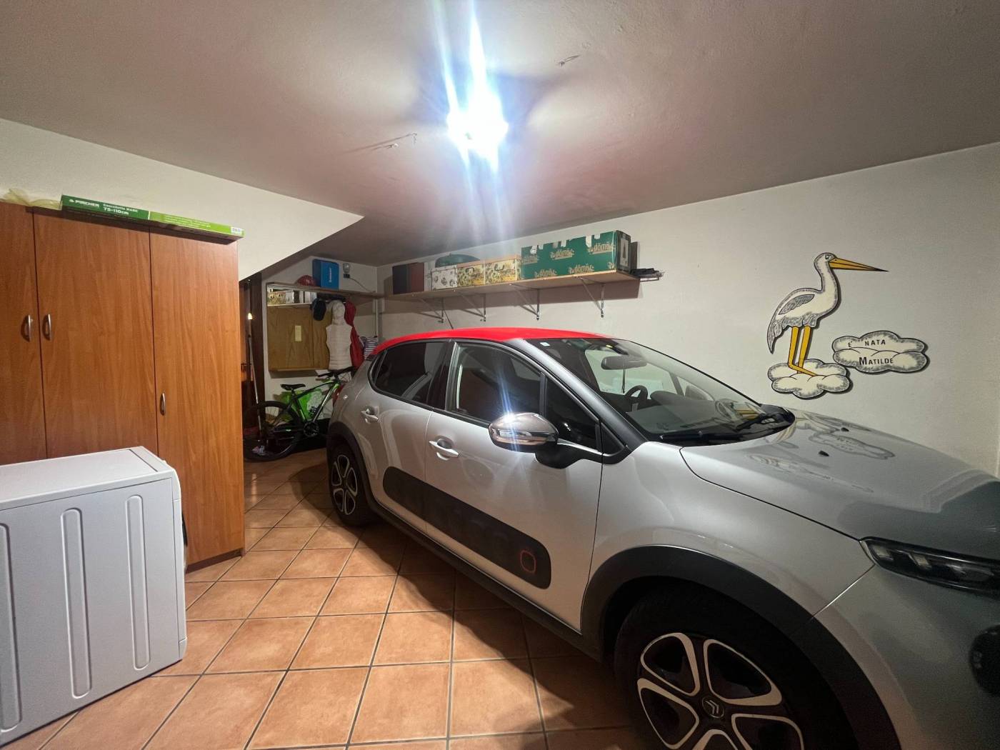 Al piano primo troviamo due camere da letto di cui una matrimoniale ed un servizio anch’esso finestrato. Completa la soluzione al piano interrato il garage dalle generose metrature ed la taverna.