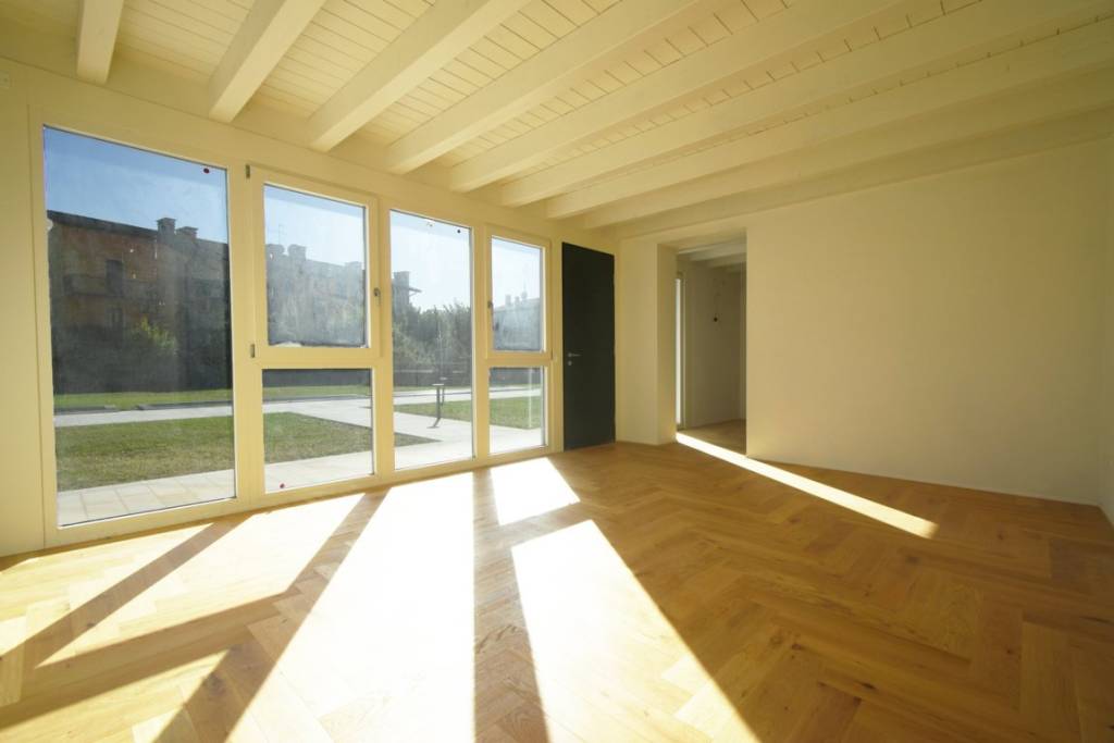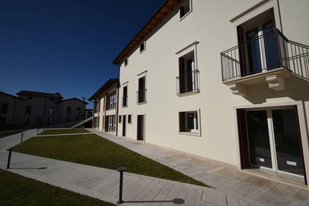 In contesto di nuova costruzione, all’interno di un residence prestigioso, villetta a schiera di lusso dalle ottime metrature. Ingresso su zona giorno separata dalla cucina con una superficie totale di 40 mq, servita da ampio bagno. Piano primo composto da due ampie camere matrimoniali con possibilità di ricavare la terza, ed ulteriore servizio finestrato. Al piano interrato piccola lavanderia, cantina e taverna. Garage doppio in larghezza di proprietà con accesso diretto all’unità abitativa Rif CRU E