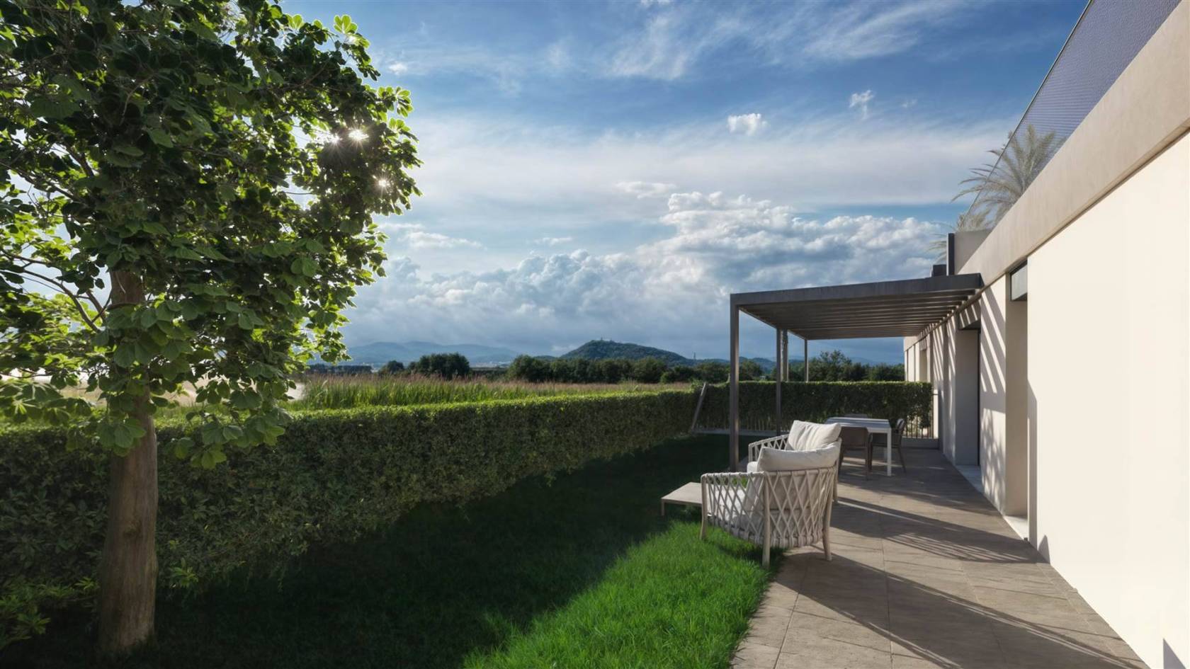 Ampio giardino da oltre 170 mq con vista aperta. Camera padronale ,due camere singole e bagno finestrato in zona notte.