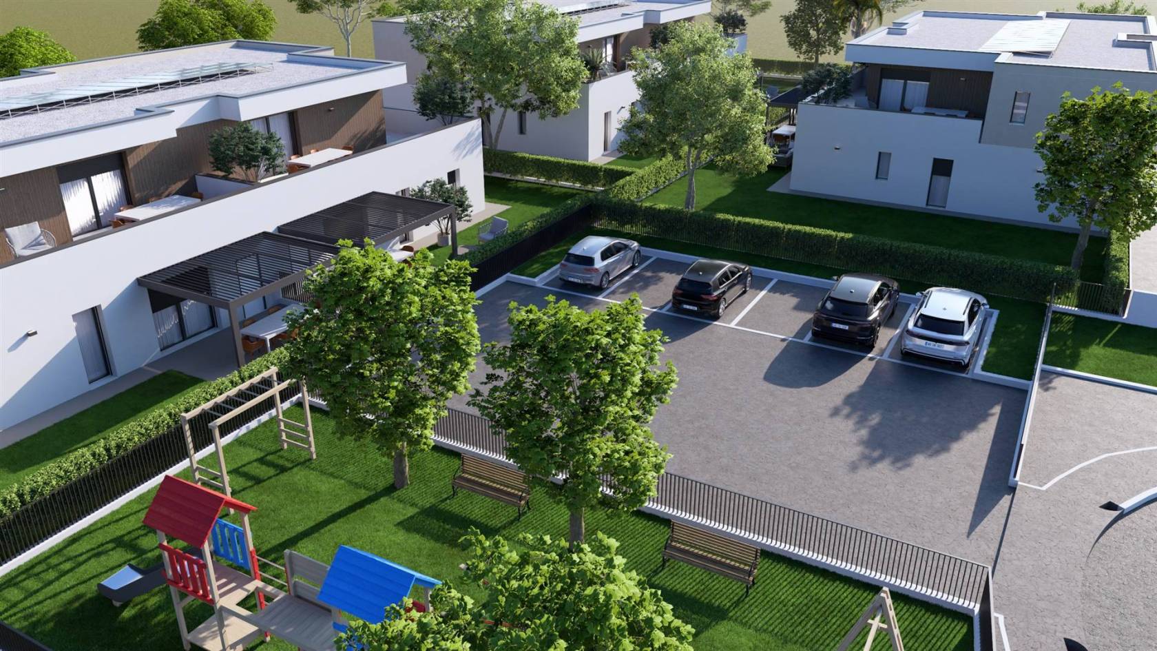 Il complesso, moderno ed elegante, ospita 20 abitazioni tra ville affiancate e unità inserite in piccoli edifici da sole 4 unità ciascuno, tutte sviluppate su due livelli. Ambienti luminosi si aprono su giardini privati e terrazze intime, spazi da vivere in ogni stagione, tra momenti di condivisione e attimi di silenzio.