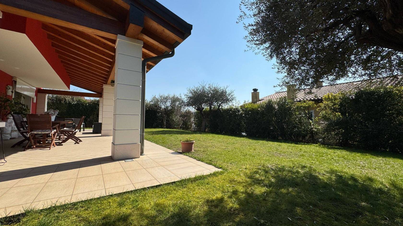 L’abitazione è circondata da un giardino esclusivo su tutti i lati, che garantisce privacy e tranquillità.